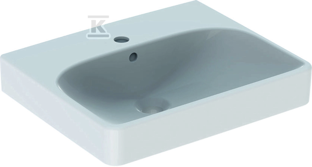 Umywalka kompaktowa Smyle Square B50 cm, H16 cm, T41 cm, z przelewem, z otworem na baterię, KeraTect o numerze katalogowym 500.256.01.8 w kategorii Umywalki ceramiczne, Ceramika. Produkt wyprodukowany przez markę GEBERIT, seria SMYLE.
