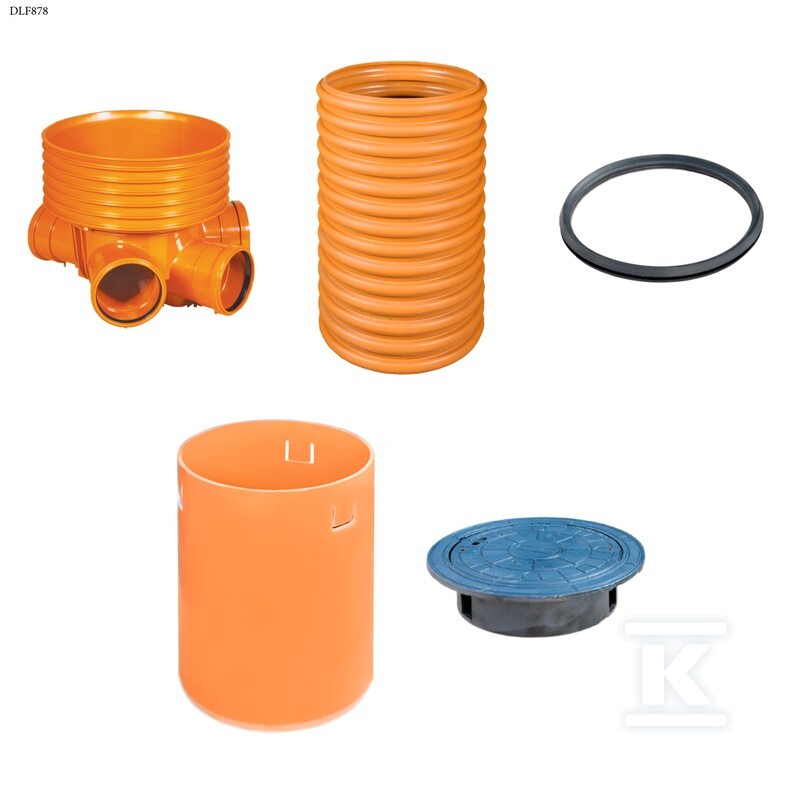 Studnia Diamir DN/ID 425 KORUGOWANA_ZESTAW: kineta zbiorcza TYP2 425xKG160 + trzon H=3m + teleskop H=40cm + właz żeliwny 425 kl.D400 o numerze katalogowym   DLF878 w kategorii Studnie kanalizacyjne tworzywowe>Studnie tworzywowe kompletne. Produkt wyprodukowany przez markę KACZMAREK, seria DIAMIR DN/ID 425NW (KORUGOWANA).