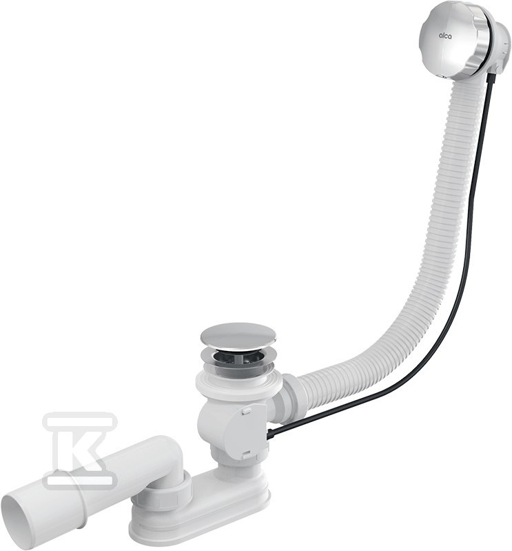Syfon wannowy, korek automatyczny, metal o numerze katalogowym A55KM w kategorii Syfony do wanien, Syfony, redukcje, złącza, rury przyłączeniowe itp.. Produkt wyprodukowany przez markę ALCADRAIN.