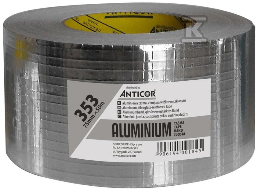 Taśma aluminiowa Aluminio 353, 75 mm x 50 m o numerze katalogowym PA-3530011-0075050 w kategorii Rury i akcesoria do klimatyzacji, Klimatyzacja. Produkt wyprodukowany przez markę ANTICOR, seria ALUMINIO.
