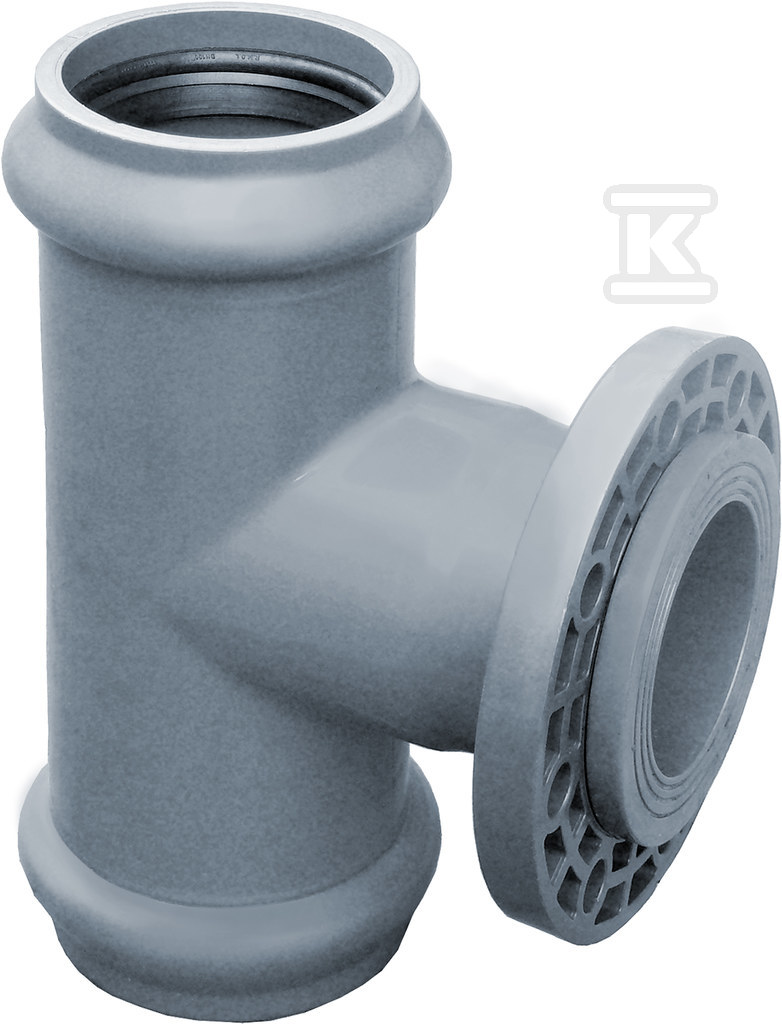 Trójnik ciśnieniowy kielichowy PVC 110×80/90 PN10 ANP (z luźnym kołnierzem i uszczelką) popiel o numerze katalogowym 0225511490 w kategorii Kształtki PVC do wody, Rury i kształtki ciśnieniowe PVC. Produkt wyprodukowany przez markę KACZMAREK.