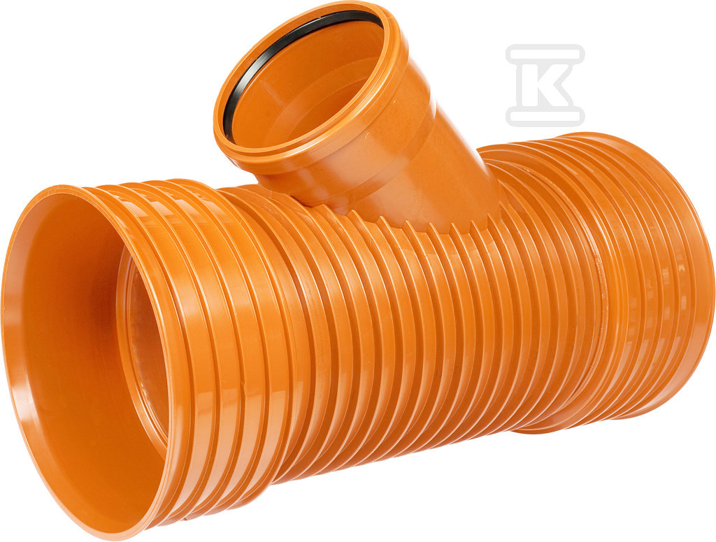 Trójnik PP K2-KAN DN/ID 400X200/45 korugowany z odejściem do rury gładkiej, bez uszczelki, do kanalizacji zewnętrznej, kolor pomarańczowy o numerze katalogowym 1020343450 w kategorii Kształtki kanalizacyjne strukturalne, Kanalizacja grawitacyjna. Produkt wyprodukowany przez markę KACZMAREK, seria K2-KAN.