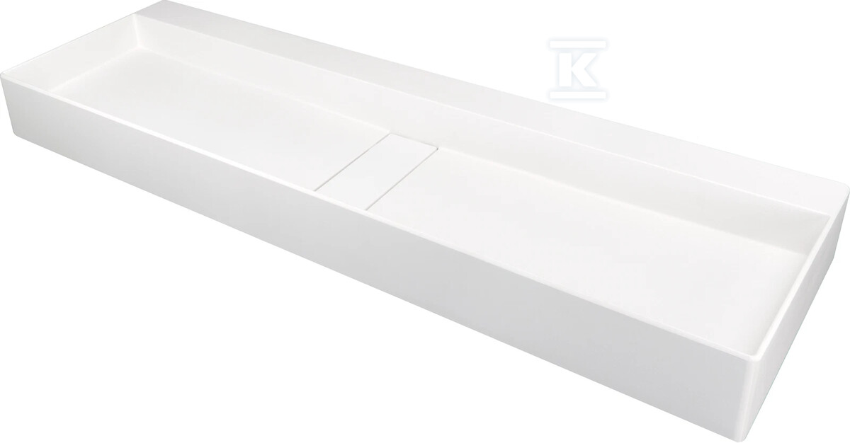 Umywalka nablatowa Blur, alabaster 120×40 cm z maskownicą o numerze katalogowym   CQB_AU2S w kategorii Ceramika>Umywalki ceramiczne. Produkt wyprodukowany przez markę DEANTE, seria BLUR.