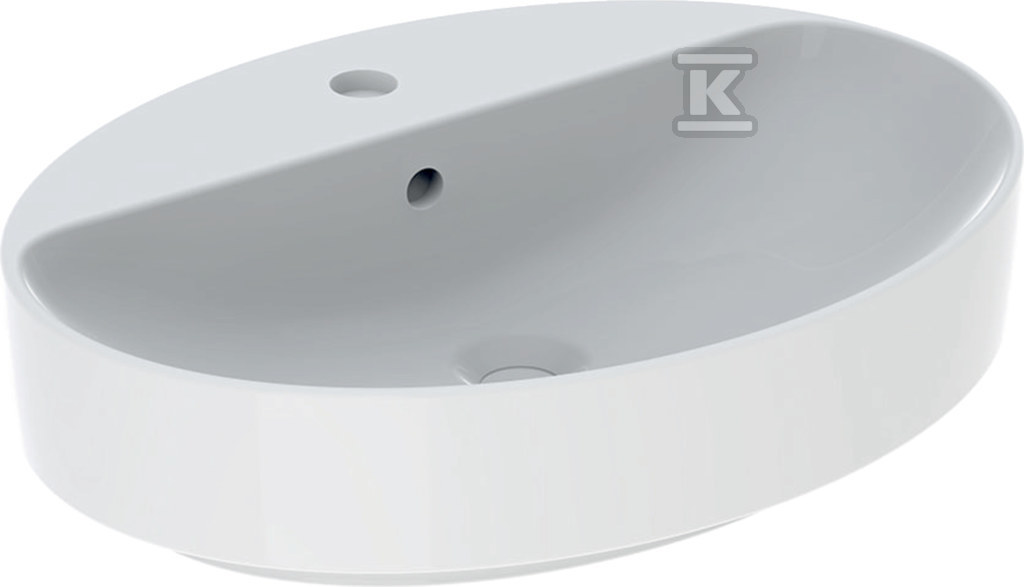Umywalka Variform stawiana na blat, owalna, B60 cm, H15.8 cm, T45 cm, z przelewem, z otworem na baterię o numerze katalogowym 500.772.01.2 w kategorii Umywalki ceramiczne, Ceramika. Produkt wyprodukowany przez markę GEBERIT, seria VARIFORM.