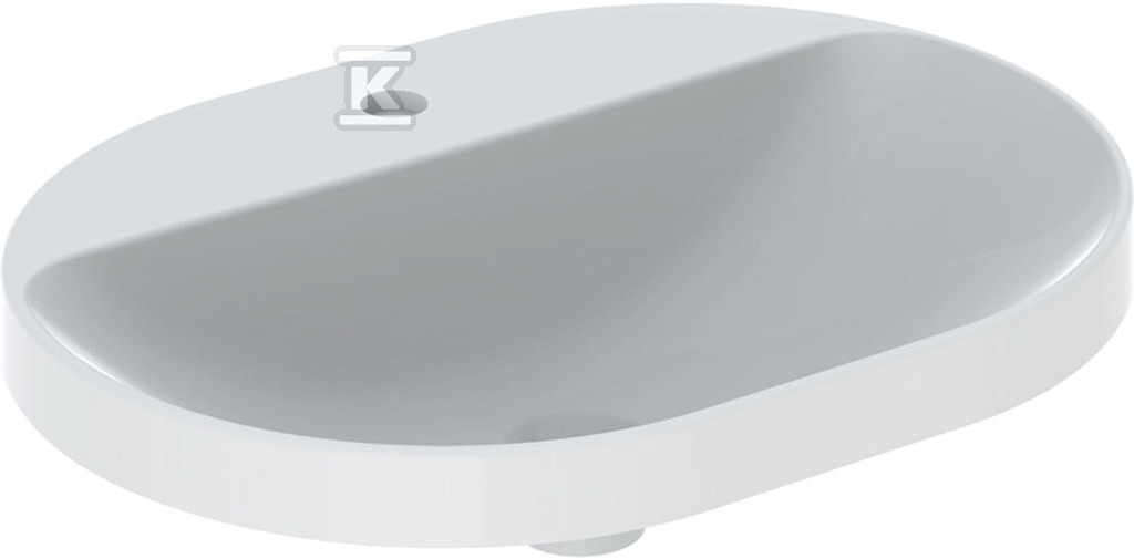 Umywalka Variform wpuszczana w blat, eliptyczna, B60 cm, H17.8 cm, T45 cm, bez przelewu, z otworem na baterię, szkliwiony spód o numerze katalogowym 500.735.01.2 w kategorii Umywalki ceramiczne, Ceramika. Produkt wyprodukowany przez markę GEBERIT, seria VARIFORM.