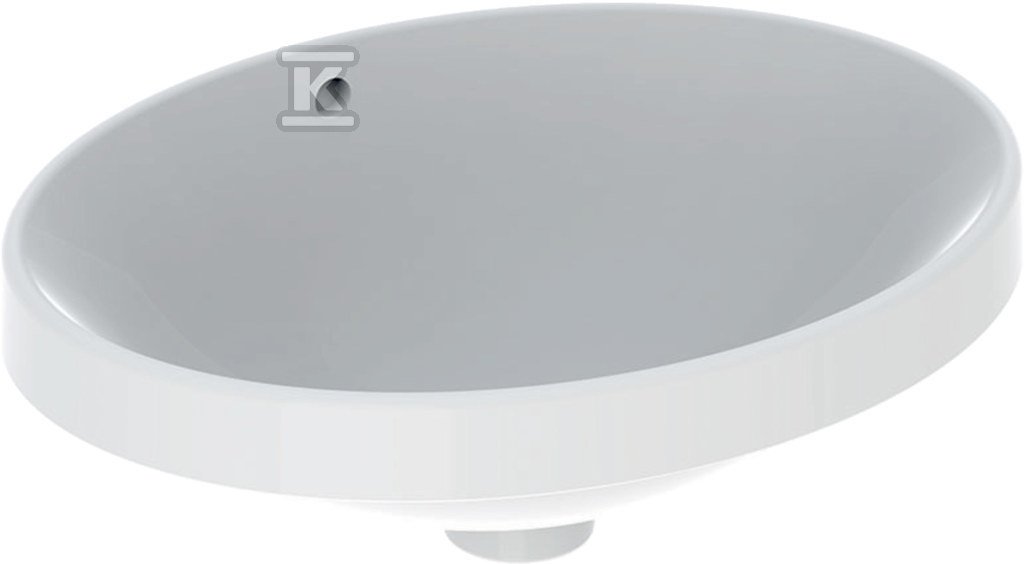 Umywalka Variform wpuszczana w blat, owalna, B50 cm, H17.8 cm, T40 cm, z przelewem, bez otworu na baterię, szkliwiony spód o numerze katalogowym 500.709.01.2 w kategorii Umywalki ceramiczne, Ceramika. Produkt wyprodukowany przez markę GEBERIT, seria VARIFORM.