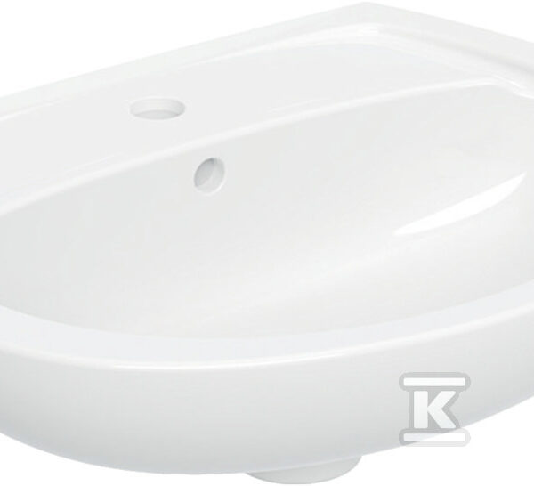 Umywalka Variform wpuszczana w blat, owalna, B60 cm, H17.8 cm, T48 cm, z przelewem, z otworem na baterię o numerze katalogowym 500.724.01.2 w kategorii Umywalki ceramiczne, Ceramika. Produkt wyprodukowany przez markę GEBERIT, seria VARIFORM.