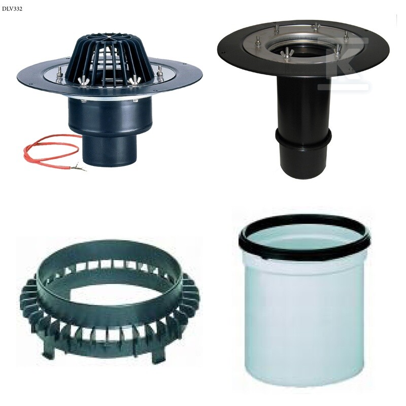 Wpust dachowy DN110 pionowy z koszem, ogrzewany HL62.1/1 + nadbudowa kołnierzowa HL65 + pierścień HL160 + nadbudowa HL350_ZESTAW o numerze katalogowym   DLV332 w kategorii Wpusty dachowe>Wpusty dachowe. Produkt wyprodukowany przez markę HL.