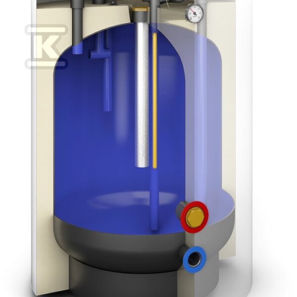 Wymiennik c.w.u. SB-201 stojący z dwoma wężownicami w komplecie z grzałką elektryczną z termostatem GRW-2.0kW/230V, 6/4 o numerze katalogowym   DLW008 w kategorii Wymienniki C.W.U.>Wymienniki pionowe. Produkt wyprodukowany przez markę KOSPEL, seria SB.