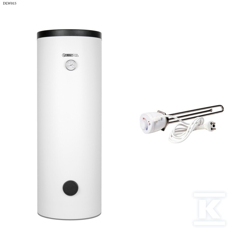 Wymiennik c.w.u. stojący z wężownicą spiralną SW-140 w komplecie z grzałką elektryczną z termostatem GRW-2.0kW/230V, 6/4 o numerze katalogowym   DLW015 w kategorii Wymienniki C.W.U.>Wymienniki pionowe. Produkt wyprodukowany przez markę KOSPEL, seria SW TERMO MAX.