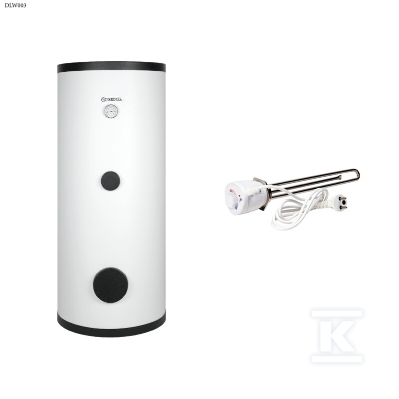 Wymiennik c.w.u. SW-251 stojący z wężownicą w komplecie z grzałką elektryczną z termostatem GRW-2.0kW/230V, 6/4 o numerze katalogowym   DLW003 w kategorii Wymienniki C.W.U.>Wymienniki pionowe. Produkt wyprodukowany przez markę KOSPEL, seria SW.