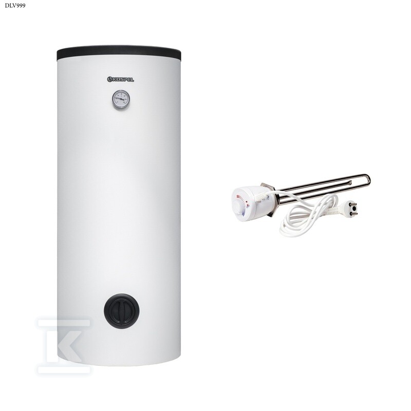 Wymiennik c.w.u. stojący z wężownicą o dużej powierzchni 2,05m2 do pomp ciepła SWP-201 w komplecie z grzałką elektryczną z termostatem GRW-2.0kW/230V, 6/4 o numerze katalogowym   DLV999 w kategorii Wymienniki C.W.U.>Wymienniki pionowe. Produkt wyprodukowany przez markę KOSPEL, seria SWP.