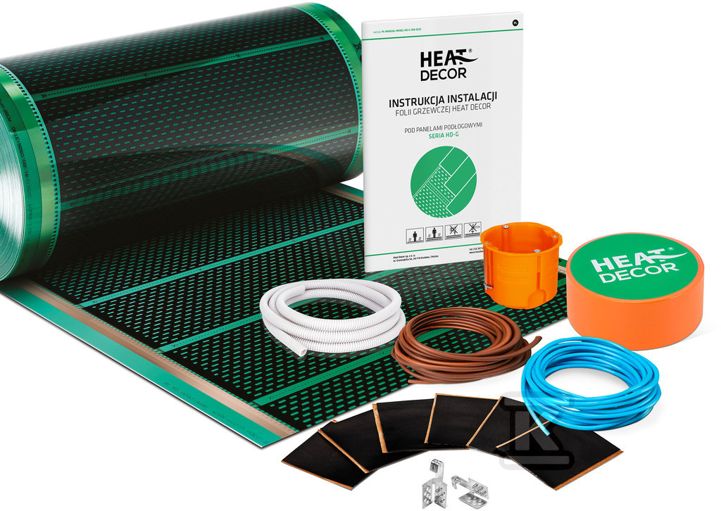 Zestaw folii grzewczej HD-G 140 W/m2, szerokość 50 cm – BEZ TERMOSTATU, konektor BX – 3m2 o numerze katalogowym   Z/GRN70/BT/BX/6 w kategorii Folie grzewcze>Zestawy folii grzewczych. Produkt wyprodukowany przez markę HEAT DECOR.