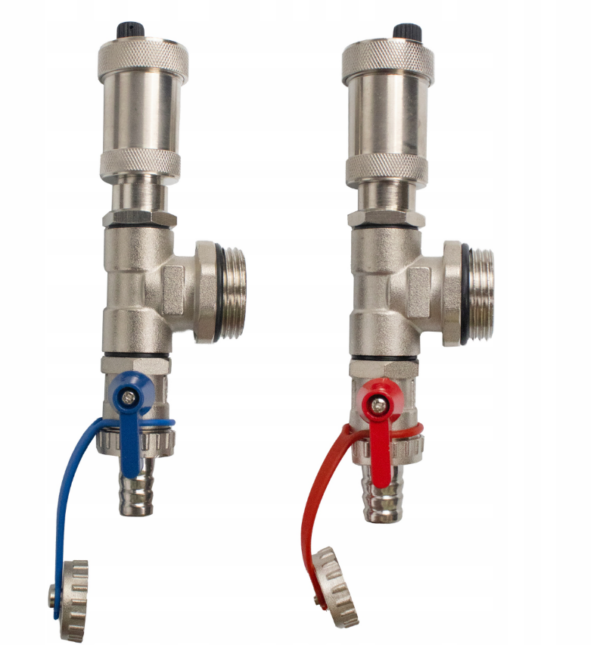 Zestaw- Zawór z termometrem i półśrubunkiem kątowy 1″