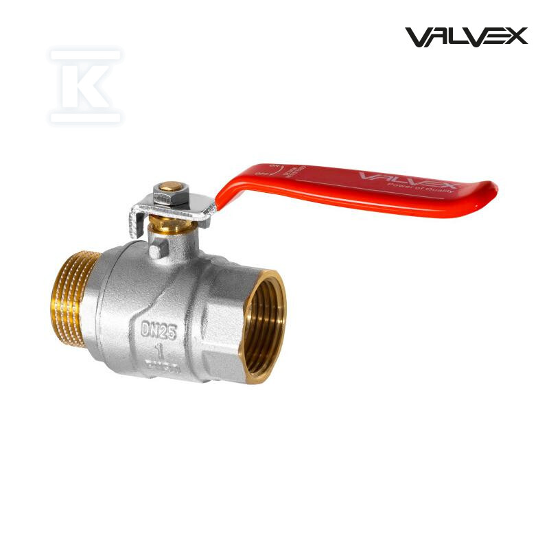 Kurek kulowy OMAX DN32-PN30-DSt (F/M) z dławikiem z dźwignią stalową (DSt) (wersja N-W) o numerze katalogowym   1405280 w kategorii Zawory kulowe>Zawory kulowe mosiężne wodne. Produkt wyprodukowany przez markę VALVEX, seria OMAX.