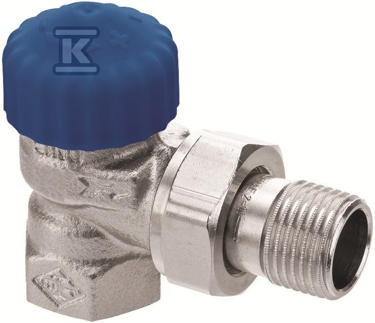 Zawór termostatyczny kątowy DN20 niklowany, o szczególnie małym oporze, kapa niebieska, kvs 3,60, bez nastawy wstępnej. o numerze katalogowym 2241-03.000 w kategorii Zawory termostatyczne, Głowice termostatyczne i zawory. Produkt wyprodukowany przez markę IMI HEIMEIER.