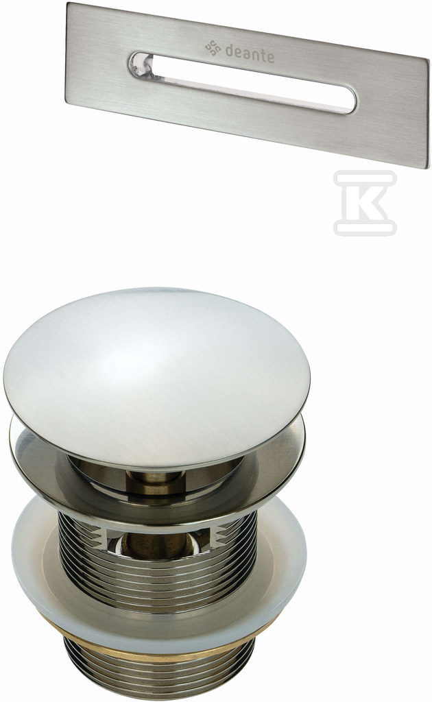 Zestaw akcesoriów do wanny – korek i przelew, stal szczotkowana o numerze katalogowym   KYY_F10B w kategorii Syfony, redukcje, złącza, rury przyłączeniowe itp.>Syfony do wanien. Produkt wyprodukowany przez markę DEANTE.
