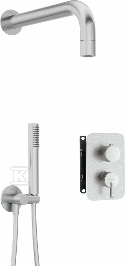 Zestaw prysznicowy podtynkowy z BOXem mieszaczowym – z główką natryskową Silia, stal o numerze katalogowym   BXYZFQSM w kategorii Zestawy prysznicowe>Deszczownice, głowice górne, zestawy z bateriami. Produkt wyprodukowany przez markę DEANTE, seria SILIA.