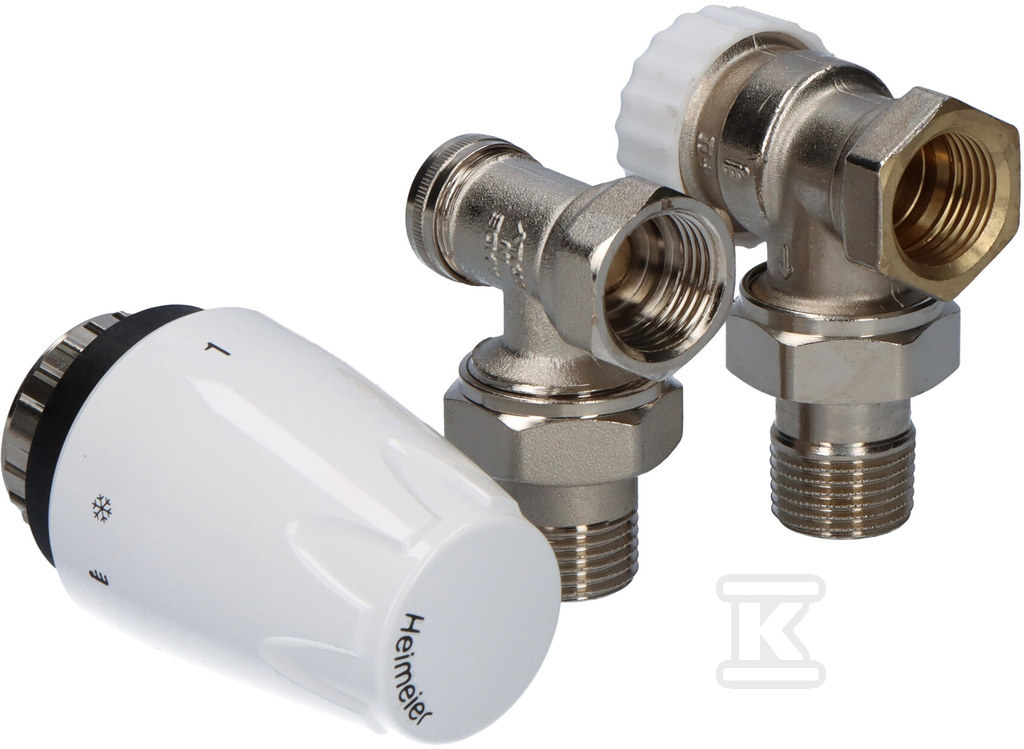 Zestaw termostatyczny z głowicą DX, zaworem termostatycznym kątowym CALYPSO exact, zaworem kątowym powrotnym Raditec DN15 o numerze katalogowym DXCALRADK12 w kategorii Zestawy termostatyczne, Głowice termostatyczne i zawory. Produkt wyprodukowany przez markę IMI HEIMEIER, seria CALYPSO.