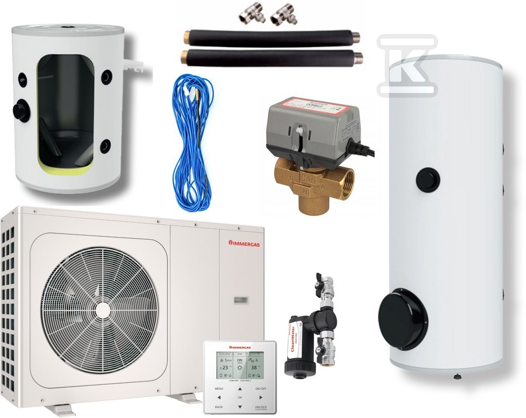 Zestaw z pompą ciepła monoblok MAGIS M8 EH300 B100 o numerze katalogowym   99000316 w kategorii Powietrzne pompy ciepła>Powietrzne pompy ciepła MONOBLOK. Produkt wyprodukowany przez markę IMMERGAS, seria MAGIS M EH.