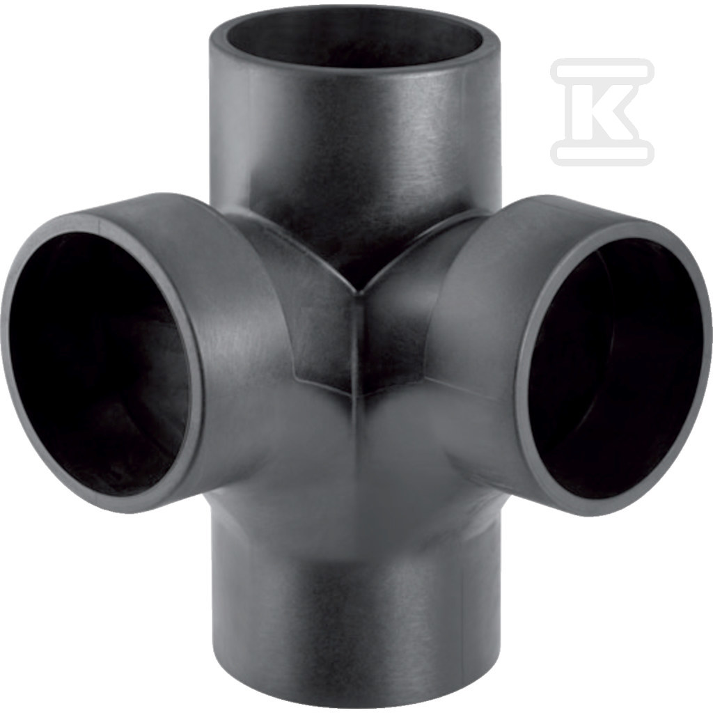 Złączka wielorozgałęźna (4-rozgałęźna) PE Silent-db20 88.5st./podejście co 90st. 110x110x110, sanitarna, do kanalizacji wewnętrznej niskoszumowej, kolor czarny o numerze katalogowym   310.083.14.1 w kategorii Kanalizacja wewnętrzna niskoszumowa>Kształtki do kanalizacji niskoszumowej. Produkt wyprodukowany przez markę GEBERIT, seria GEBERIT_SILENT-DB20.