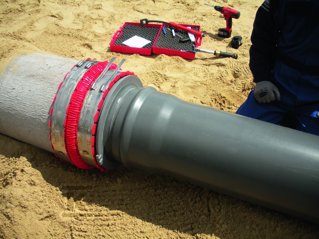 VPC- Złącze elastyczne do rury betonowej okrągłej DN 800 (ze wzmocnioną ścianką) z rurą z tworzywa sztucznego DN/OD 800 za pomocą adaptera z tworzywa sztucznego., zakres śreDN ic zewnętrznych: 1010-1070 mm o numerze katalogowym VPCBA800_0000 w kategorii Złącza elastyczne, Złącza do rur kanalizacyjnych. Produkt wyprodukowany przez markę FUNKE.